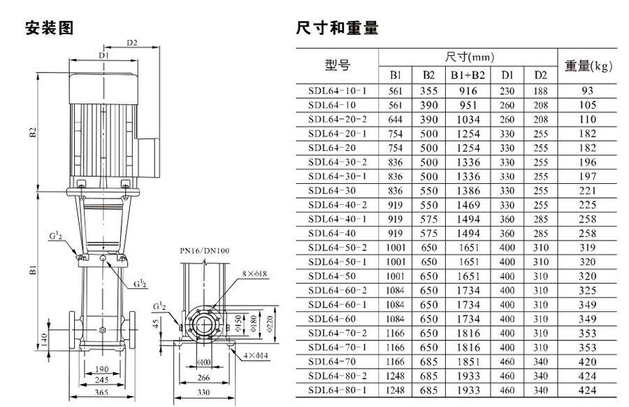 SDL64/SDLT64立式多級(jí)離心泵其管道式結(jié)構(gòu)可以確保泵可直接安裝在進(jìn)出在同一水平線上且管徑相同的水平管路系統(tǒng)中,這種設(shè)計(jì)使泵的結(jié)構(gòu)和管路更為緊湊。