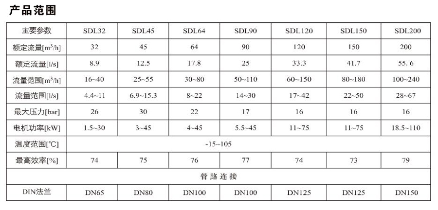 SDL64/SDLT64是一種多功能產(chǎn)品,可以輸送從自來水到工業(yè)液體的各種不同介質(zhì),適用于不同溫度、流量和壓力范圍。