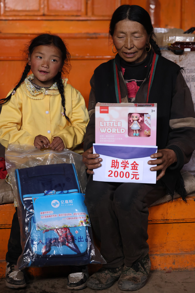 “我叫梅朵卓玛,我喜欢唱歌跳舞,我长大了想带爷爷奶奶去天安门广场上看升国旗。”梅朵卓玛是个爱笑的女孩,在六一她穿着来自爱心人士买的新裙子和奶奶翩翩起舞,妈妈去世后,爷爷奶奶倾尽所有的爱陪伴着小卓玛成长,这也让她成为一个爱笑的姑娘。